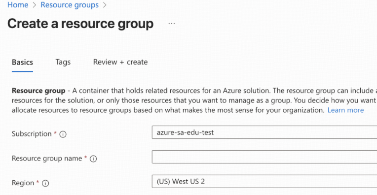 - この例では、既存の環境からの明確な分離を確実にするため、このサンプルワークロード専用の新しいリソースグループとストレージアカウントを作成します。これが唯一の方法ではありませんが、権限の分離を強制する最も簡単な方法です。