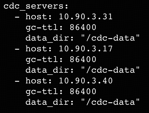 - TiDBクラスタと並行して、TiCDCクラスタ用に追加のノードを3台準備してください。ノードの要件はこちらを参照してください。この例では、これらのノードのプライベートIPアドレスは10.90.3.31、10.90.3.17、および10.90.3.40です。
