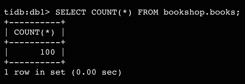 ここでは、bookshopデータベース内のbooksテーブルを使用してレプリケーションを実施します。このステップでは、お使いのTiDBクラスタ内にこのスキーマとテーブルを作成します。