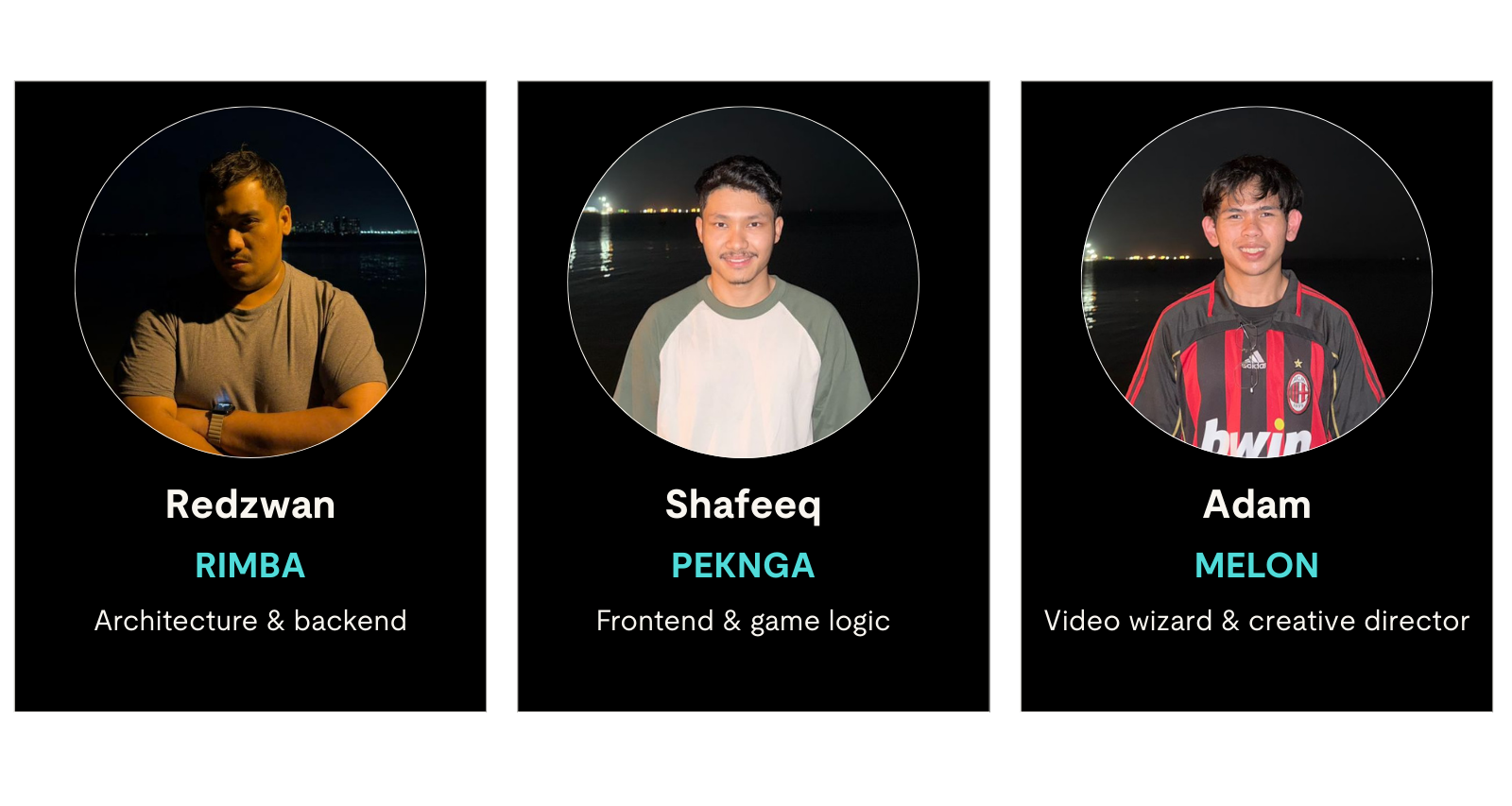 私たちはMelon (Adam)、Rimba (Redzwan)、そしてPekNga (Shafeeq) です。私たちはマレーシア人の開発者3名で構成されており、少しエッジの効いた「DGD (Dark Game Dev)」というチーム名でCursorハッカソンに登録しました。実態は「Wayang Studio」という小さなクリエイティブ・スタジオで、いつか自分たちのゲームを作るという夢について、これまで数え切れないほどの時間を費やして議論してきました。